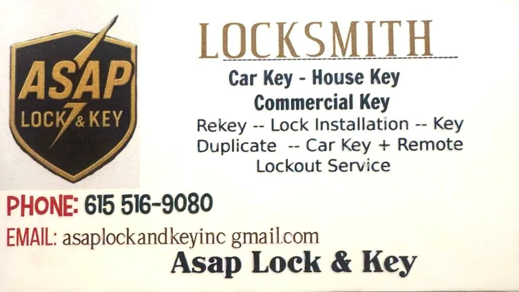 ASAP Lock & Key, a professional locksmith company in Tennessee. We specialize in residential, commercial, and automotive locksmith services,